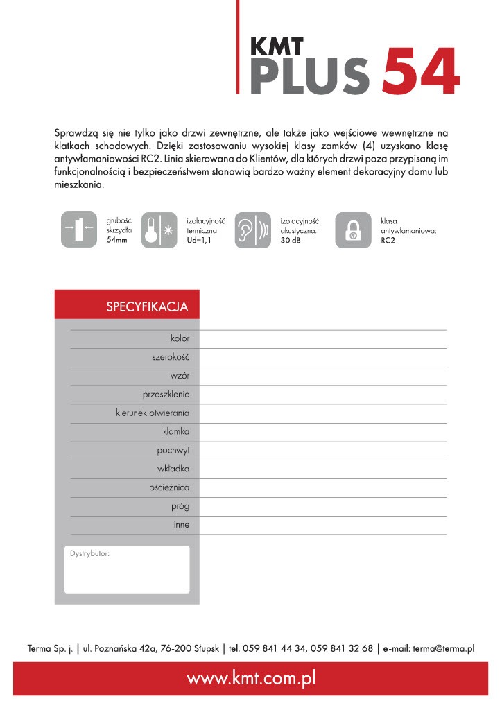 Drzwi zapewniają izolację akustyczną, chronią przed pożarem i włamaniem. Zastosowano przekładkę termiczną oraz dwie uszczelki, co pozwala na wyeliminowanie strat ciepła i ograniczenie zużycia energii. Zastosowanie naświetli lub dostawek daje możliwość zagospodarowania nietypowych przestrzeni montażowych, nadając budynkom wyjątkowy charakter.